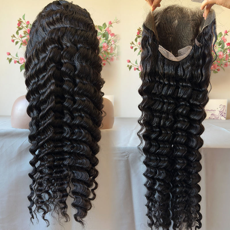 30Inch 200% Density Loose Deep Wave Natural Black Virgin Human Hair 13x6 HD for Lace Frontal Wig Pre-Plucked Hairline