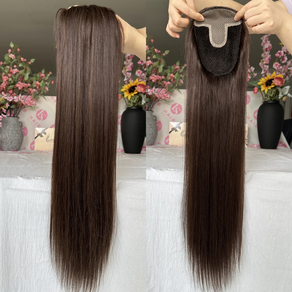Customized 22" Long 6x6" Fishnet Topper with Silk Base Top Dark Brown Color 2 European Raw Human Hair