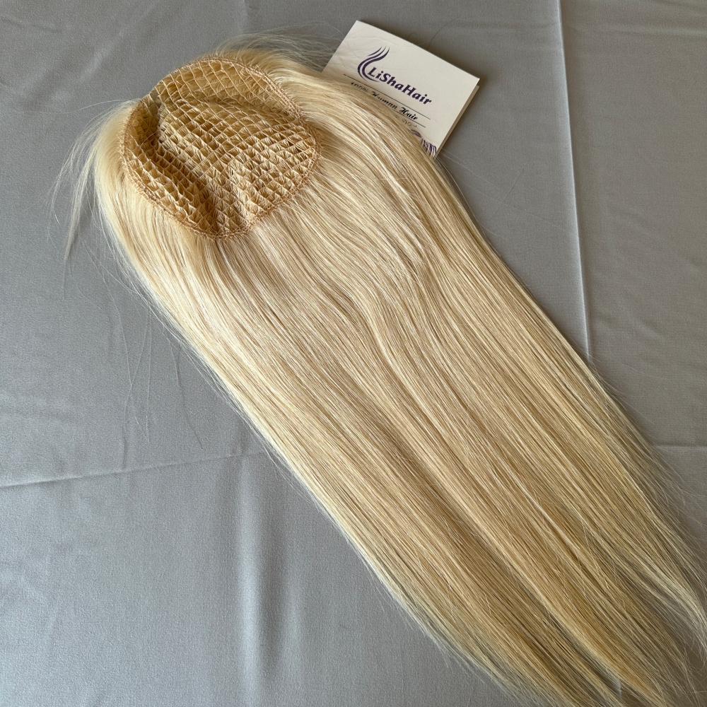 Blonde Fishnet Hair Topper for Women Human Hair Integration Hair Pieces