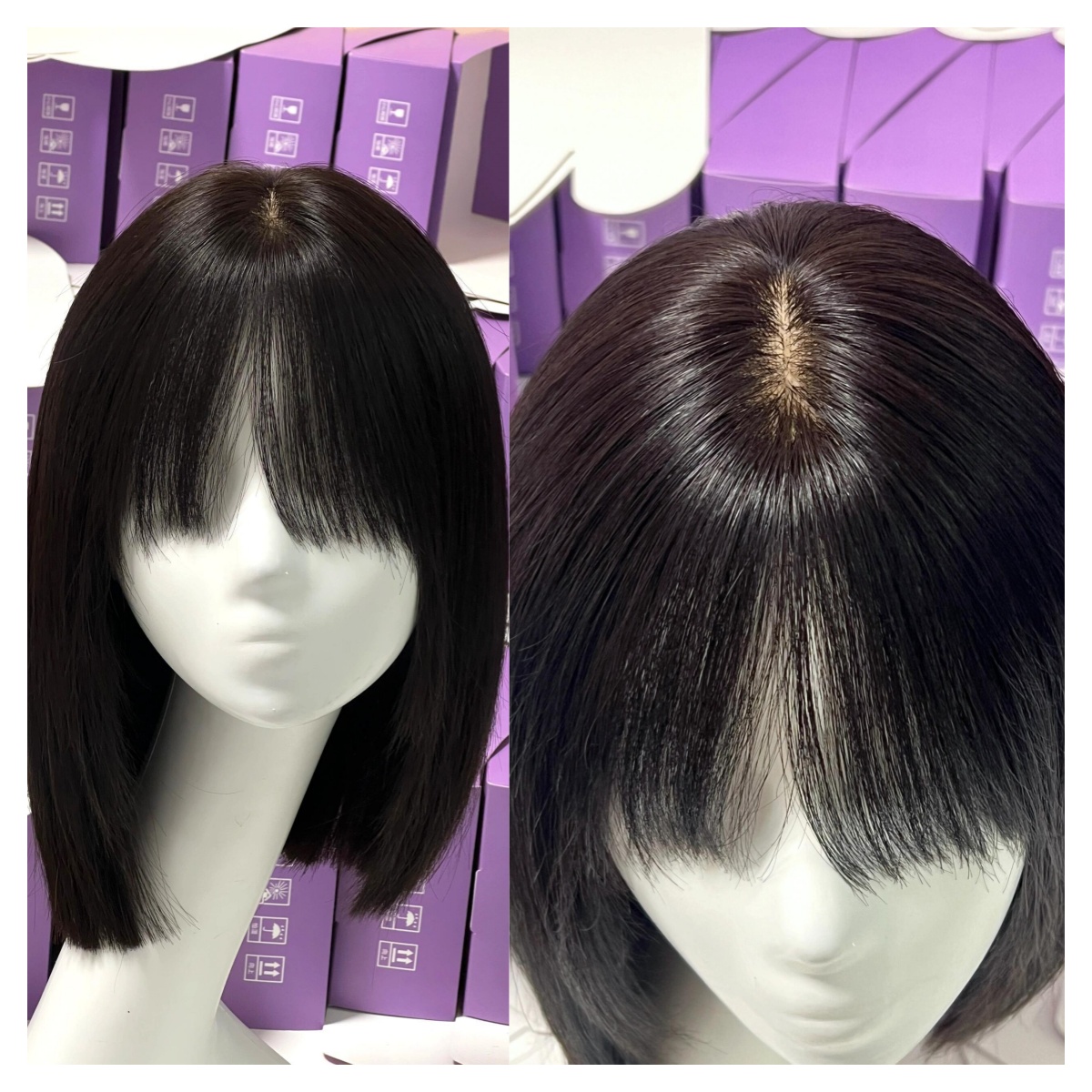 Luxury Quality Virgin Human Hair Bob Style Wig with Natural Bangs Soft Silk Base Lace Wig Hot Sale Real Scalp