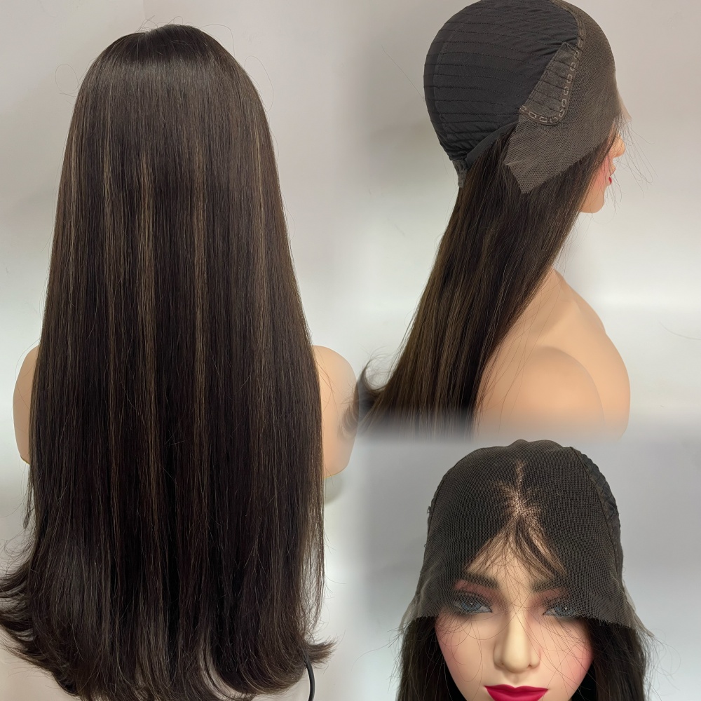 Darkest Chocolate Brown Top Lace Virgin Hair Jewish Kosher Wigs for Orthodox Jewish Women