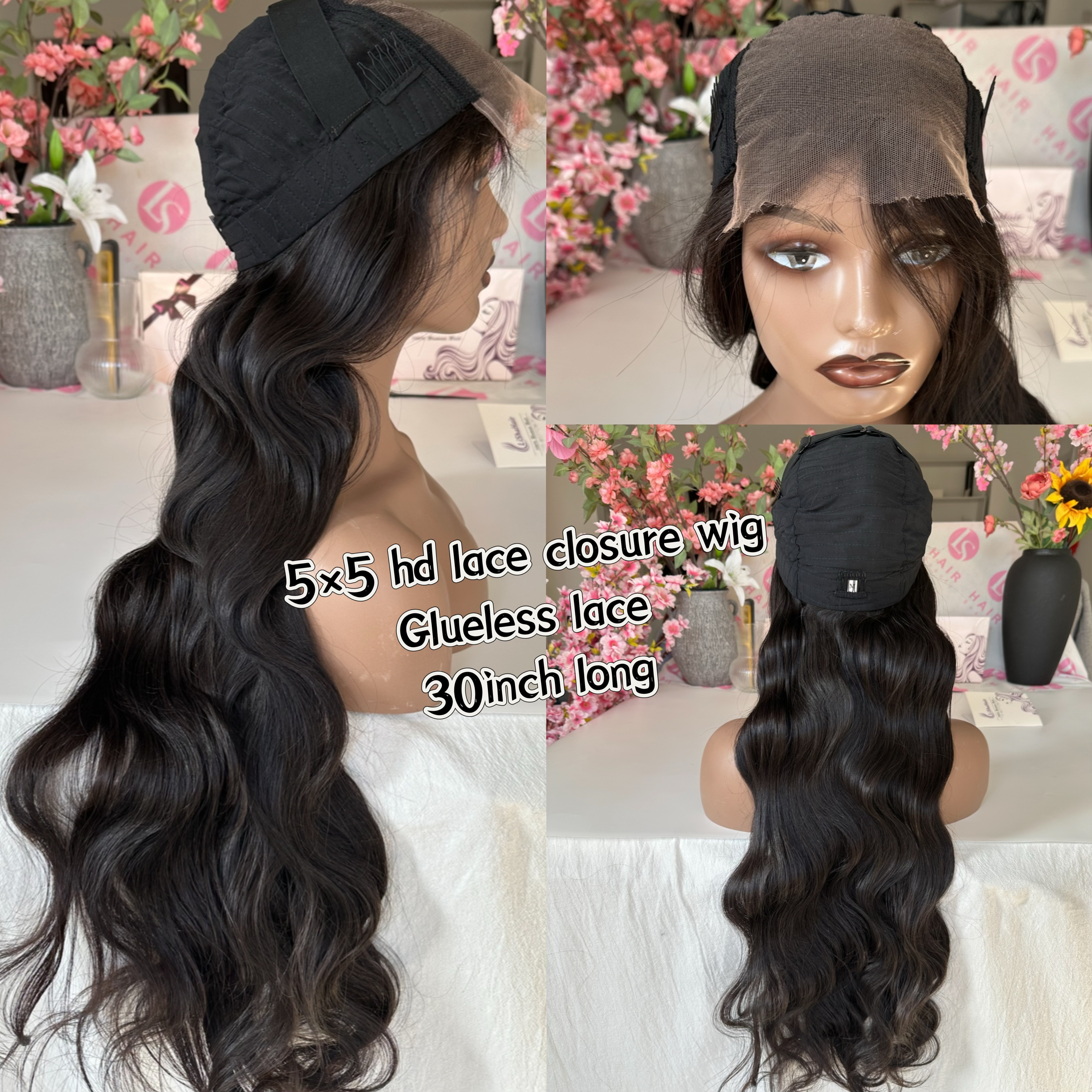 Body Wave Lace Wig Human Hair Pre Plucked Glueless 5x5 Brazilian Virgin HD Lace Closure Wig 200% density 30inch long