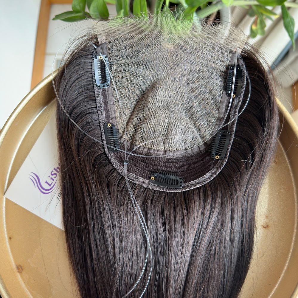 Lisha Hair 16'' 5.5x6'' Clip on Topper for Women Human Hair Silk Top Lace Base Full Coverage European Virgin Hair