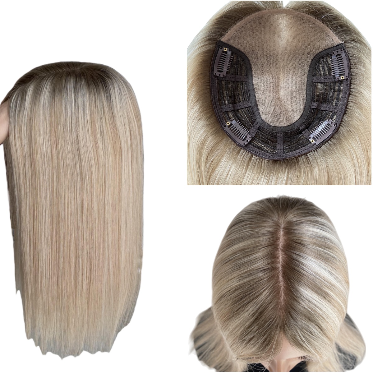 Highlights Color Virgin Human Hair Topper 6.5X7 Silk Base with Wefted Full End Realistic Scalp