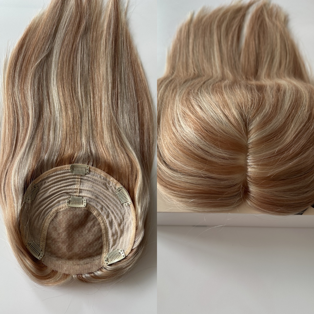 High quality human hair and knots invisible top make the hair topper is supper natural and looks pretty!