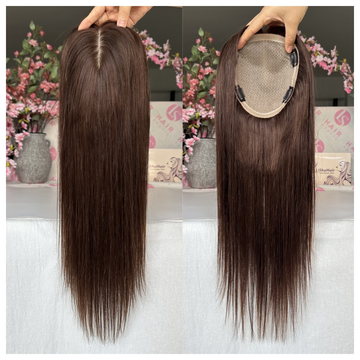 Full hand tied silk base Women Topper Piece with straight bang for Hair Loss