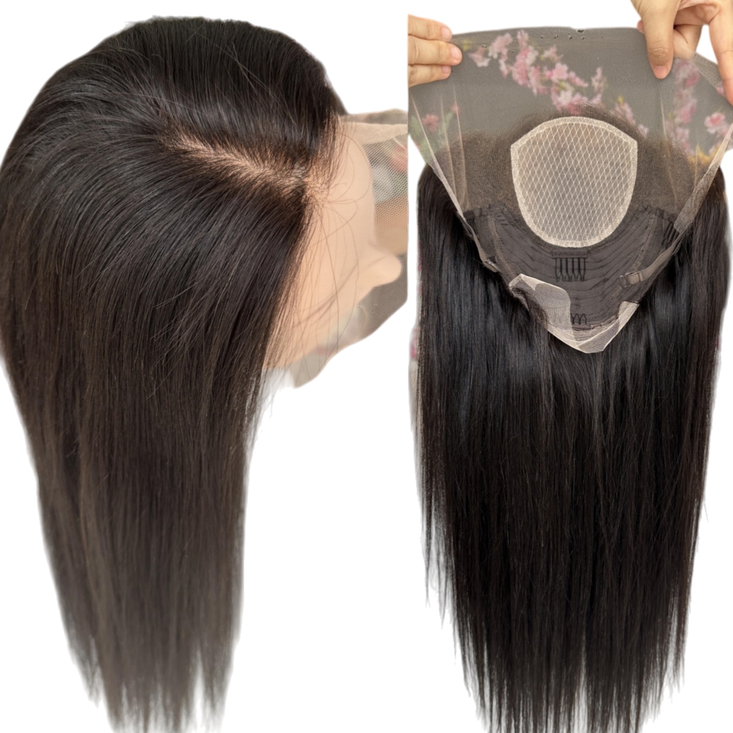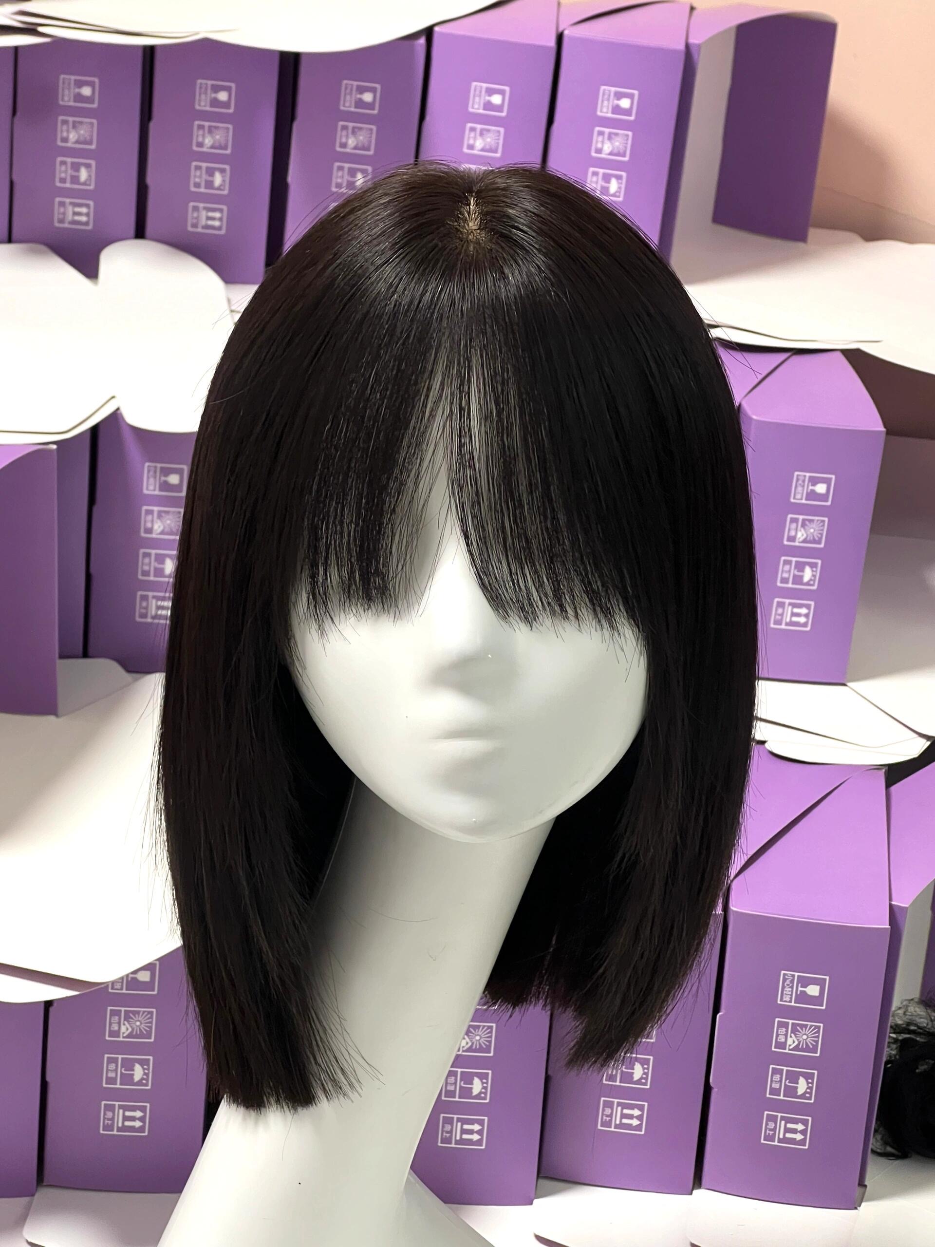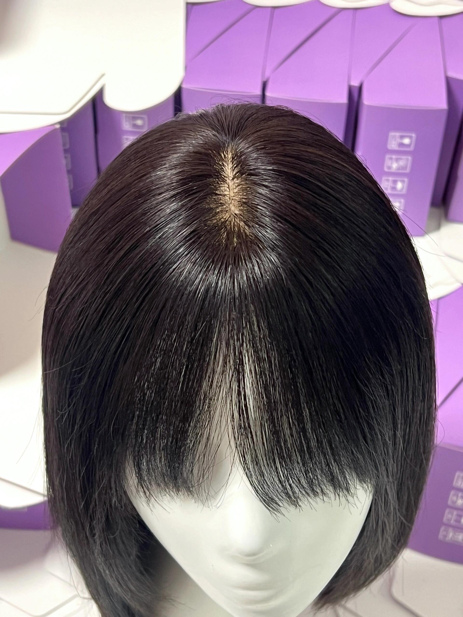 Full hand tied silk base Women Topper Piece with straight bang for Hair Loss