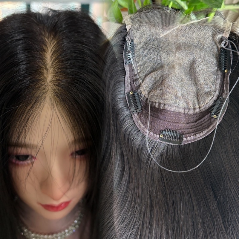Virgin Human Hair Topper for Women-Straight HD Lace Base Breathable & Realistic Scalp