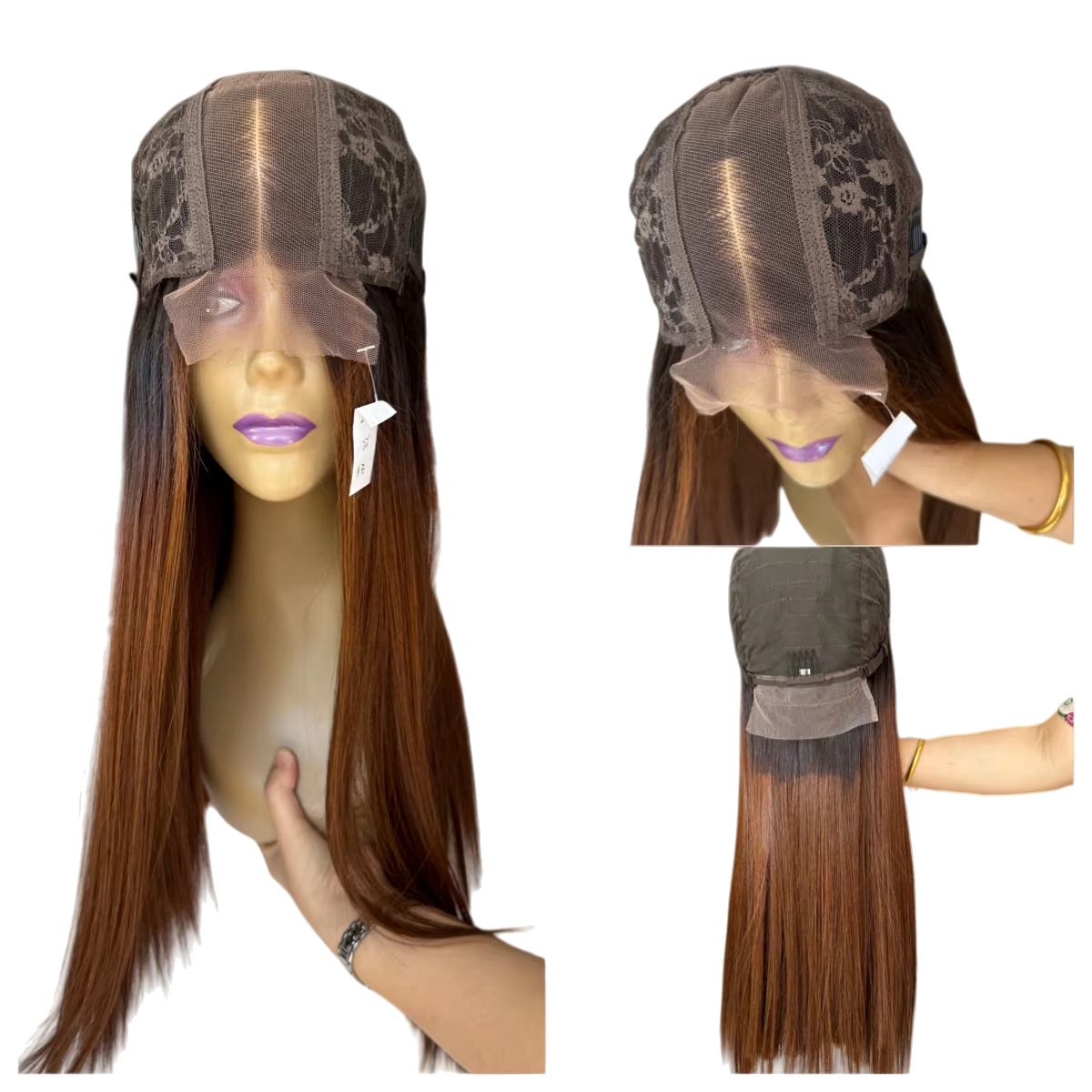 100% Vietnam Human Hair 2x6 Transparent Lace Closure Wigs Ombre Two Tone Color Bone straight double drawn hair