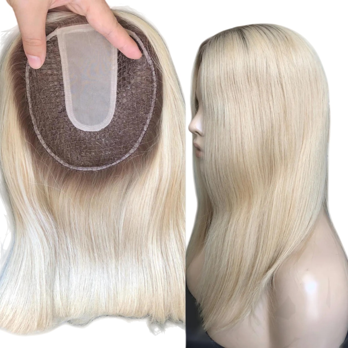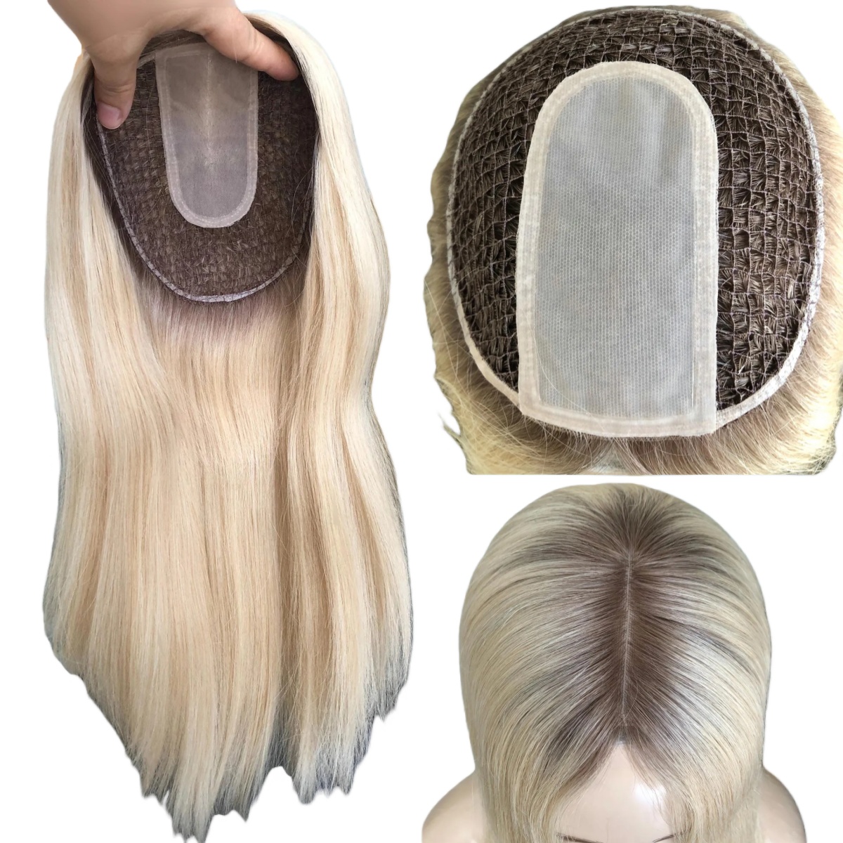 New Styles Fishnet Topper with silk base Customize Color 100% Human European Human Hair Topper for Women
