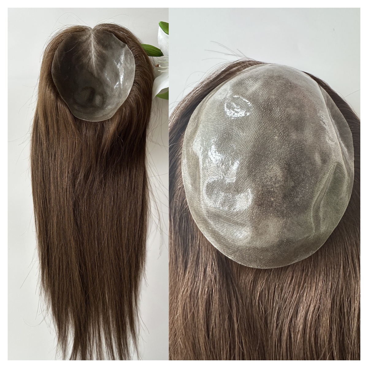Injected PU base super thin most realistic light density for women with thinning hair, 13x17cm thin skin base hair topper