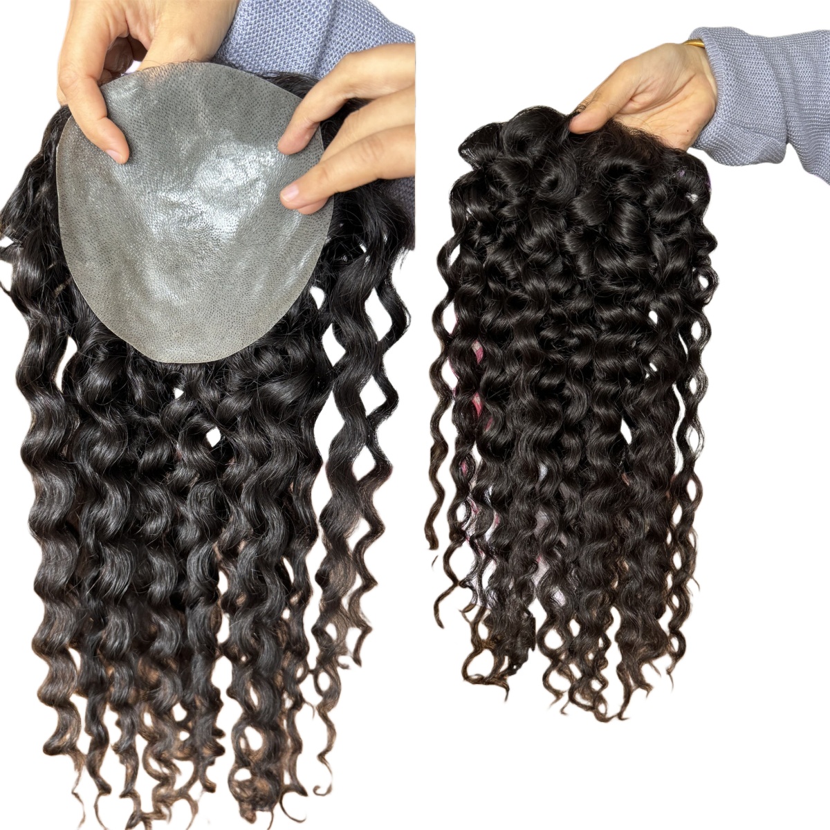 Black Curly Water Wave Style Hair System 150% Density Curly Style Hair with Pu Base Topper for Women