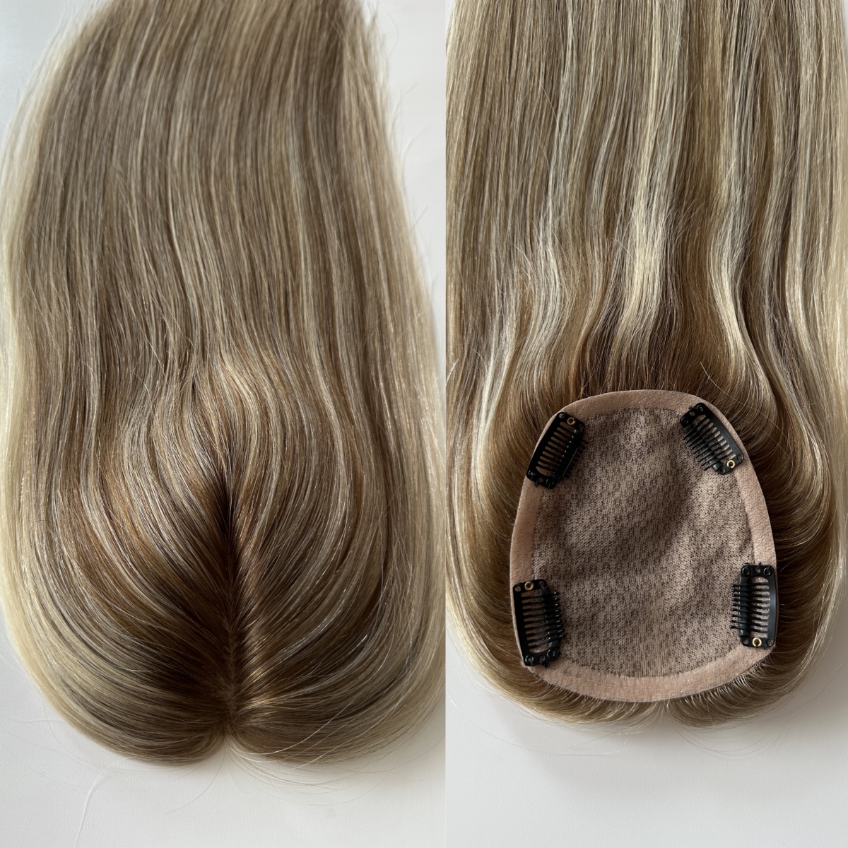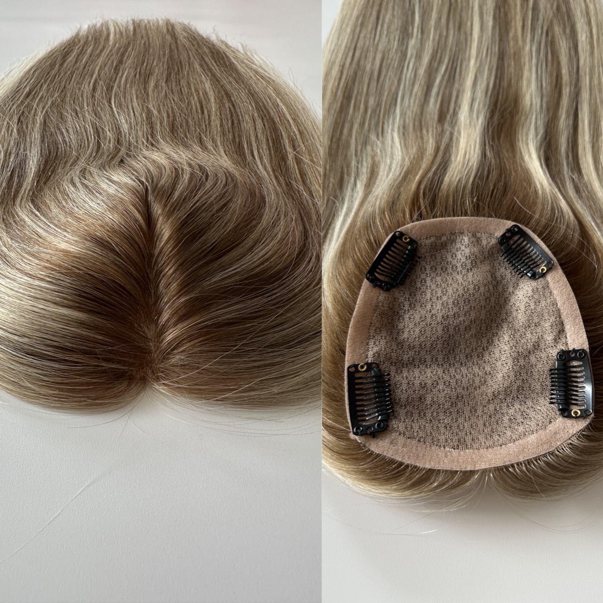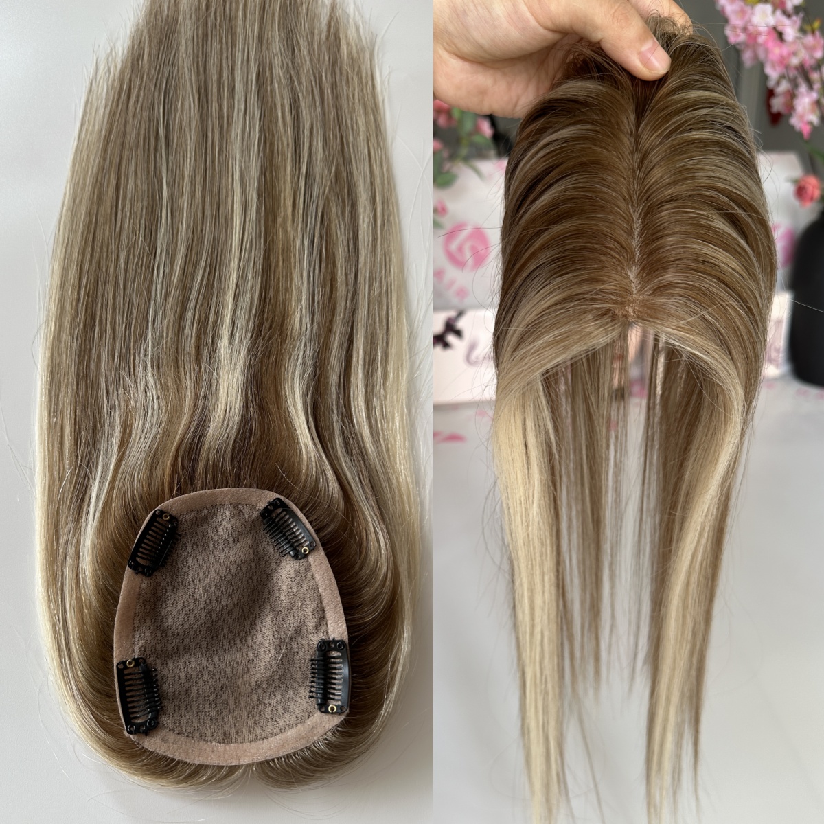 Wholesale 16 Inch 4x5 European Raw Virgin Real Human Hair Silk Base Topper PU Skin Toupee for Baldness Alopecia Loss Balayage