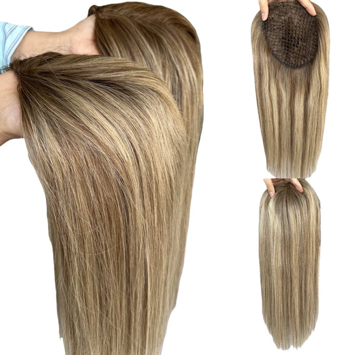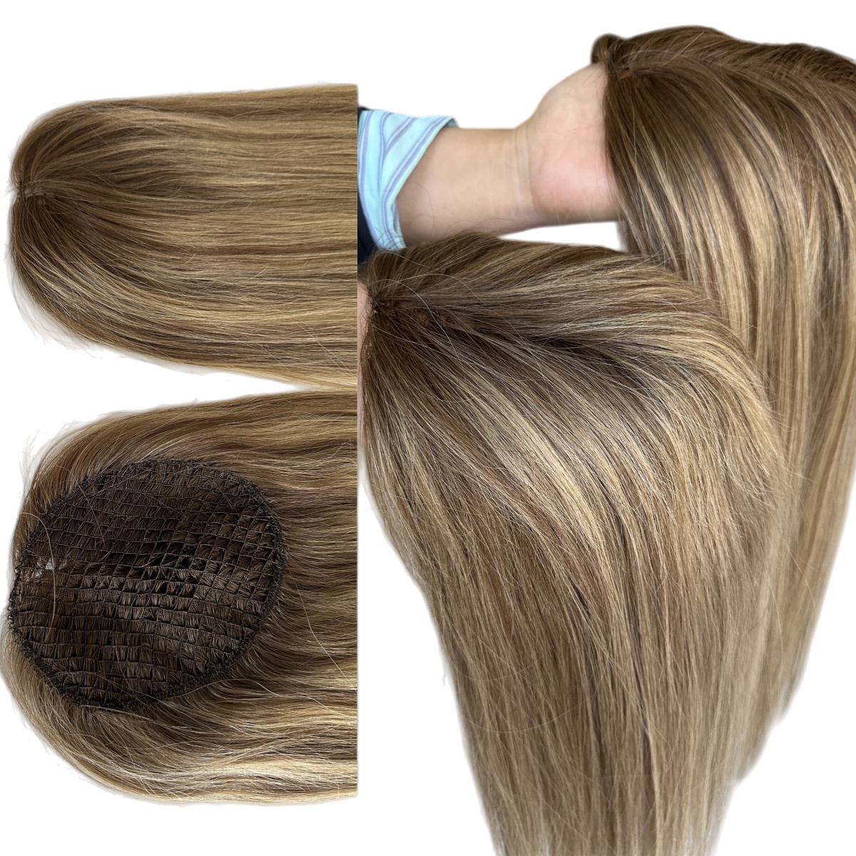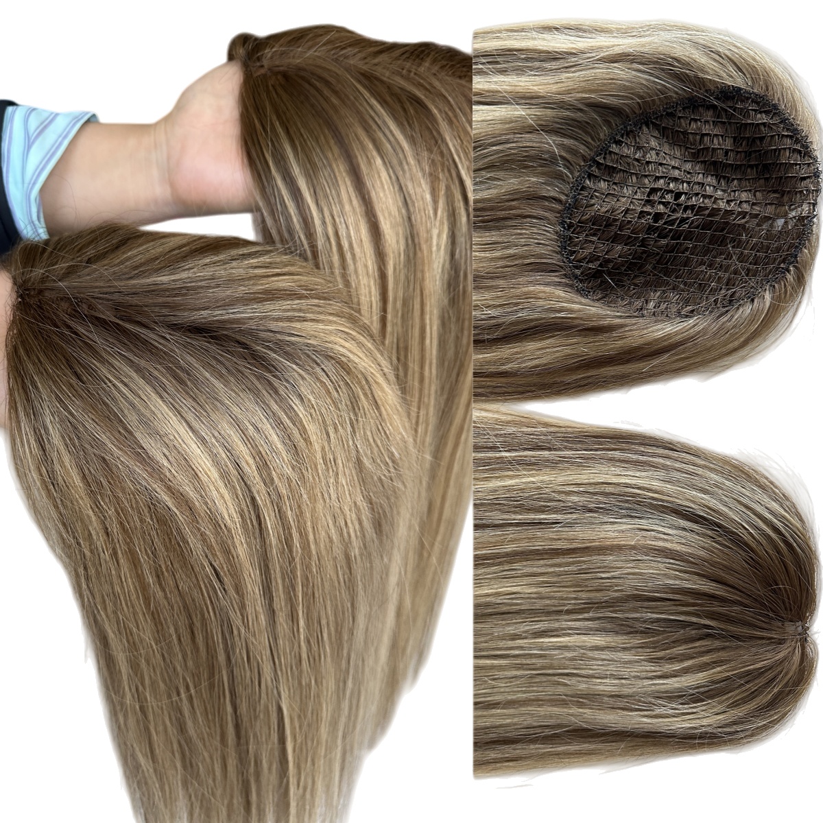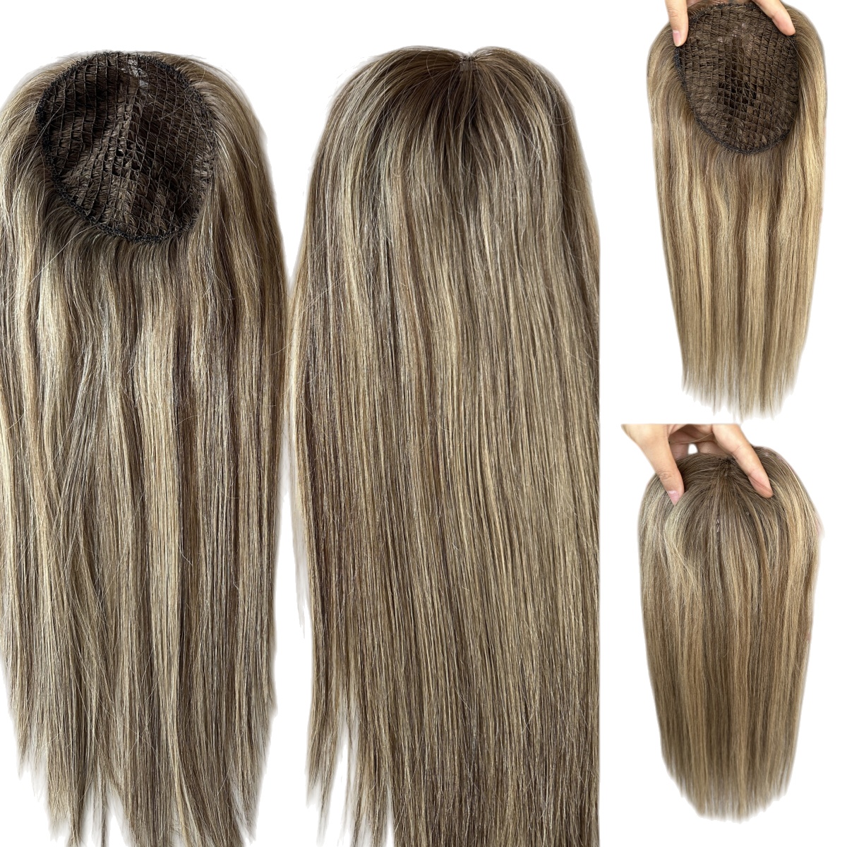 Balayage Color 5x5'' Fishnet Topper 100% Hand Tied One Donor European Raw Human Hair Topper Free Parted Design