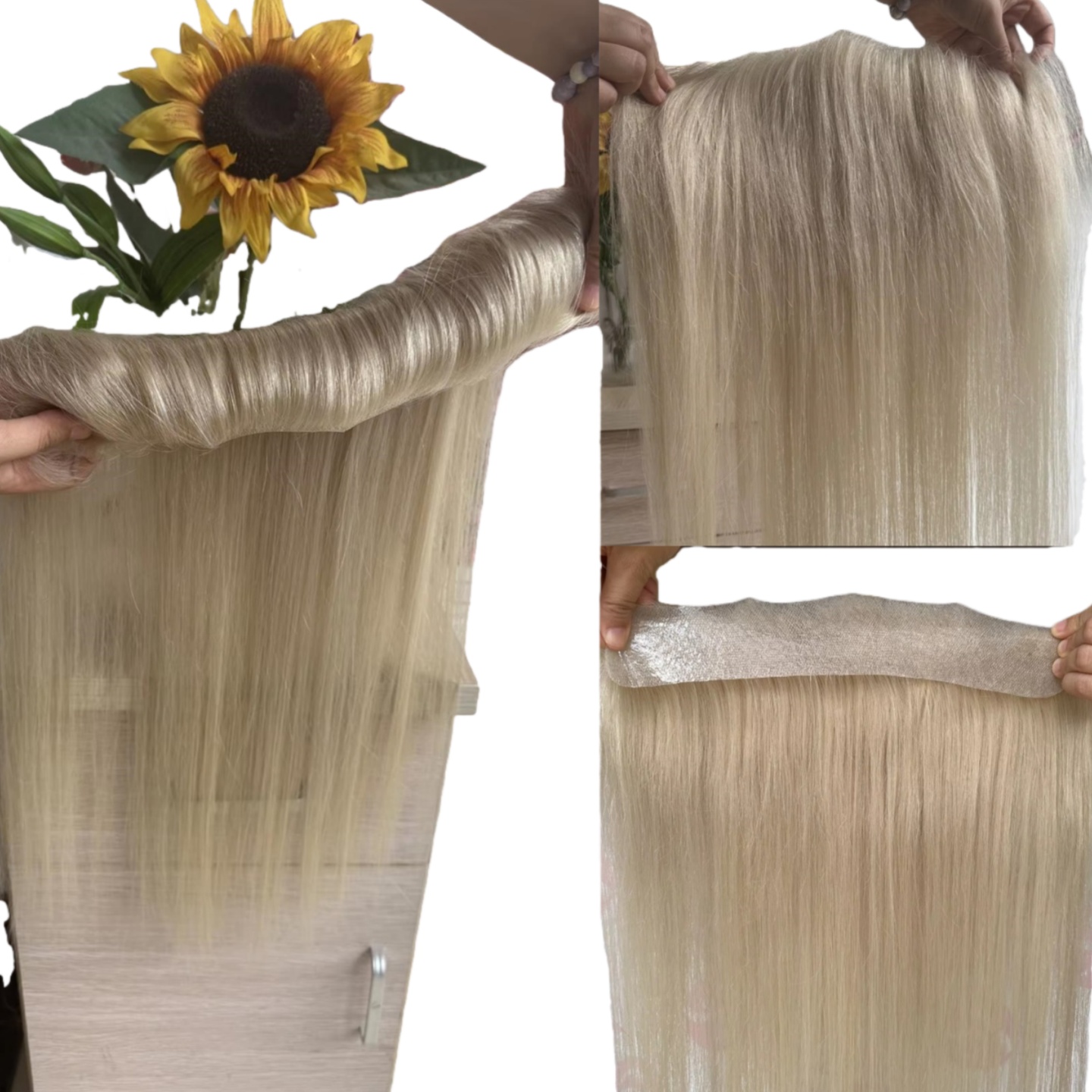 European Raw Real Human Hair Blonde Color 60 13x2 Transparent Lace Hair Line Topper Receding Hairline