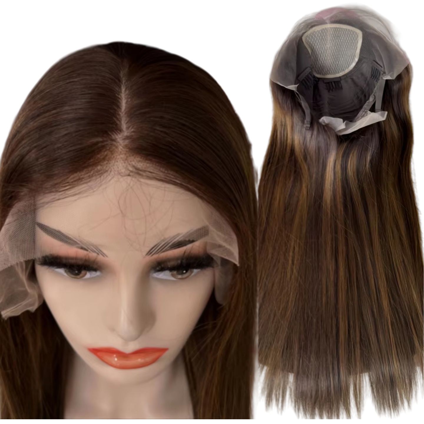 Women's Hand Tied Silk Base Top Lace Front Wig with Highlight Colors Ready to Ship Toupee Product