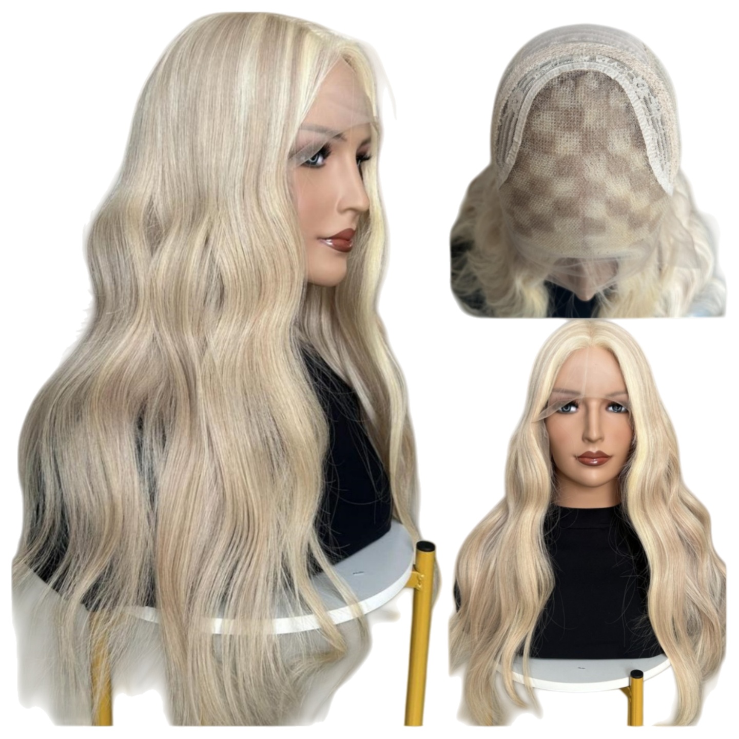 Human Hair Wig with Sunny Blonde Highlights P18A/60 9x5 Stock Size for Swiss Lace Front for White Women