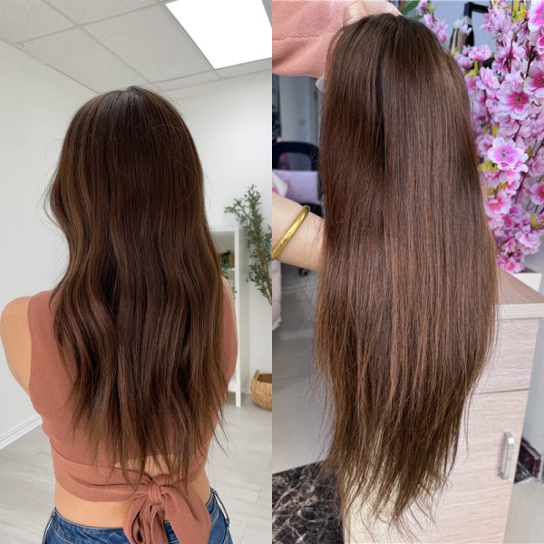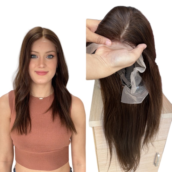 Indian virgin human hair Silk base lace front wig color 3 medium brown