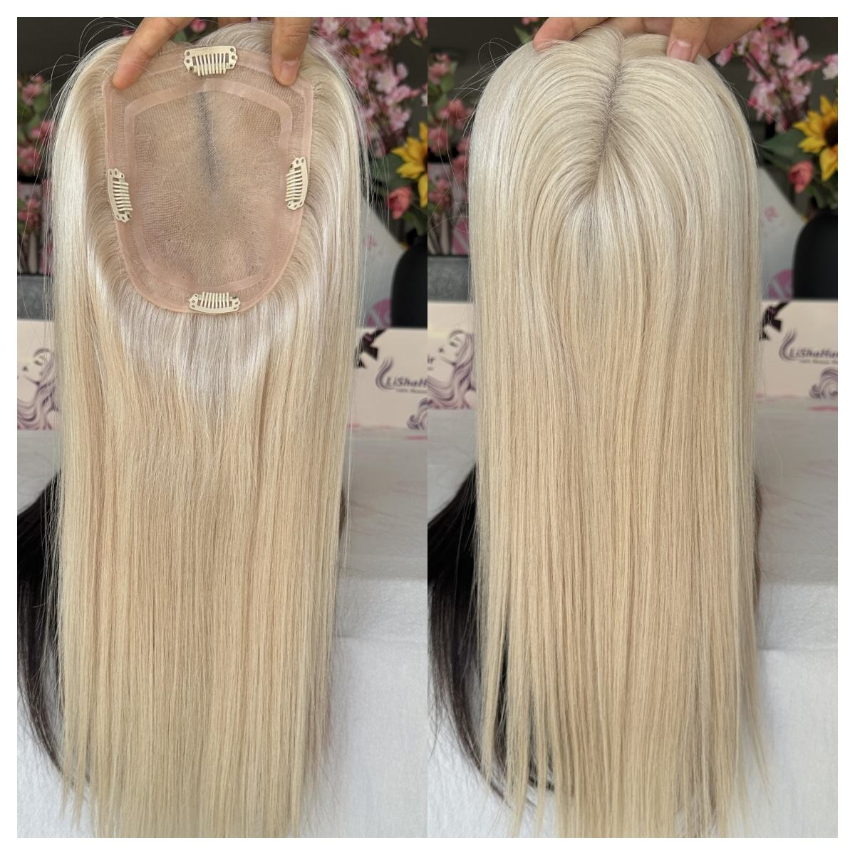 Hot Sale European Handmade 3x5 Mono Base Hair Topper for Women Balayage Ash Blonde Color Hair Pieces
