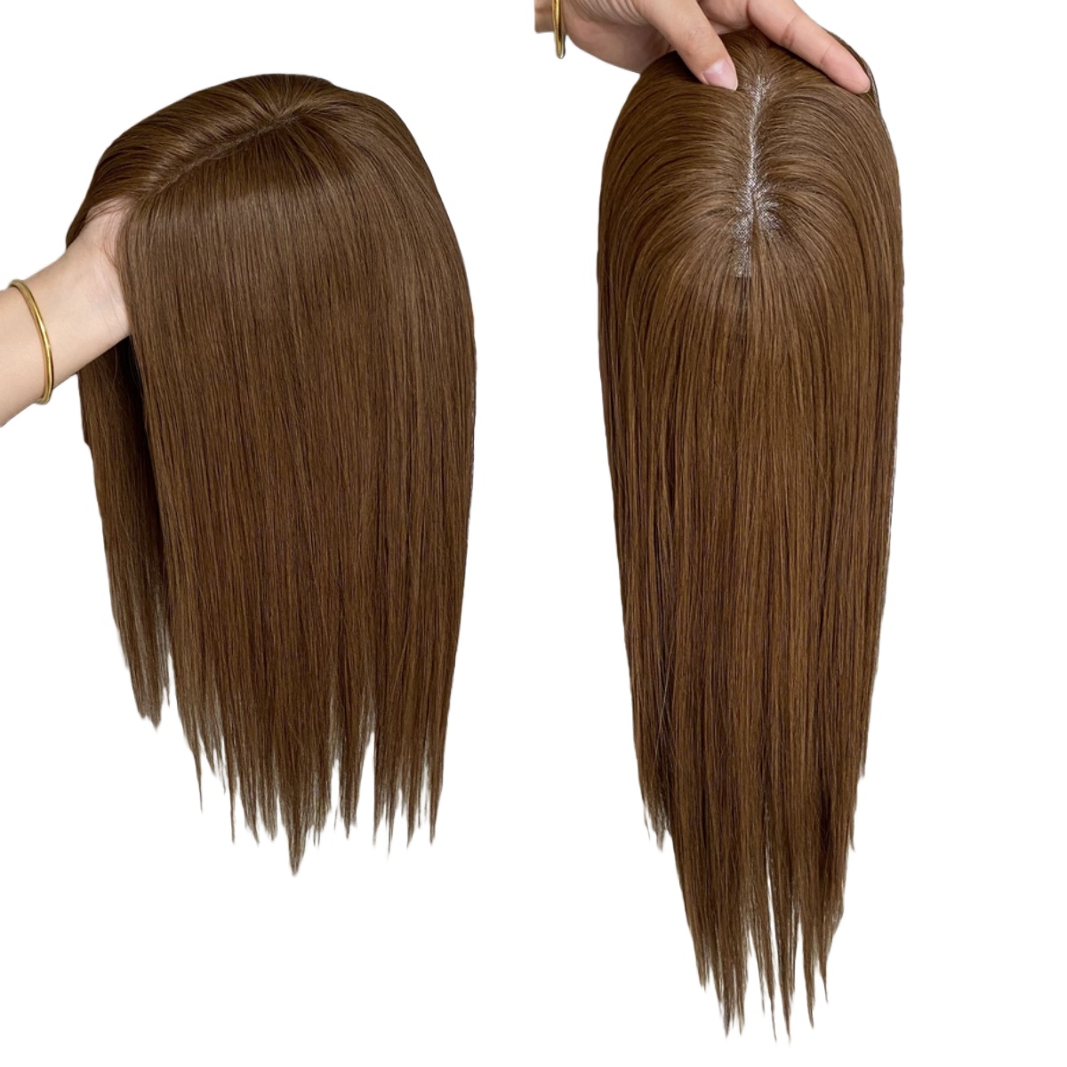 Full hand tied silk base Women Topper Piece with straight bang for Hair Loss