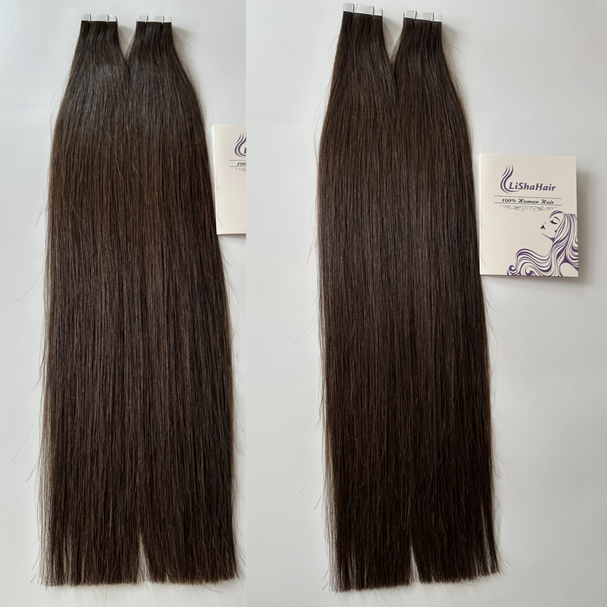 Ready to Ship Straight #2 Darkest Brown Tape in Hair Extensions Raw Human Hair 50g 40pcs/Pack