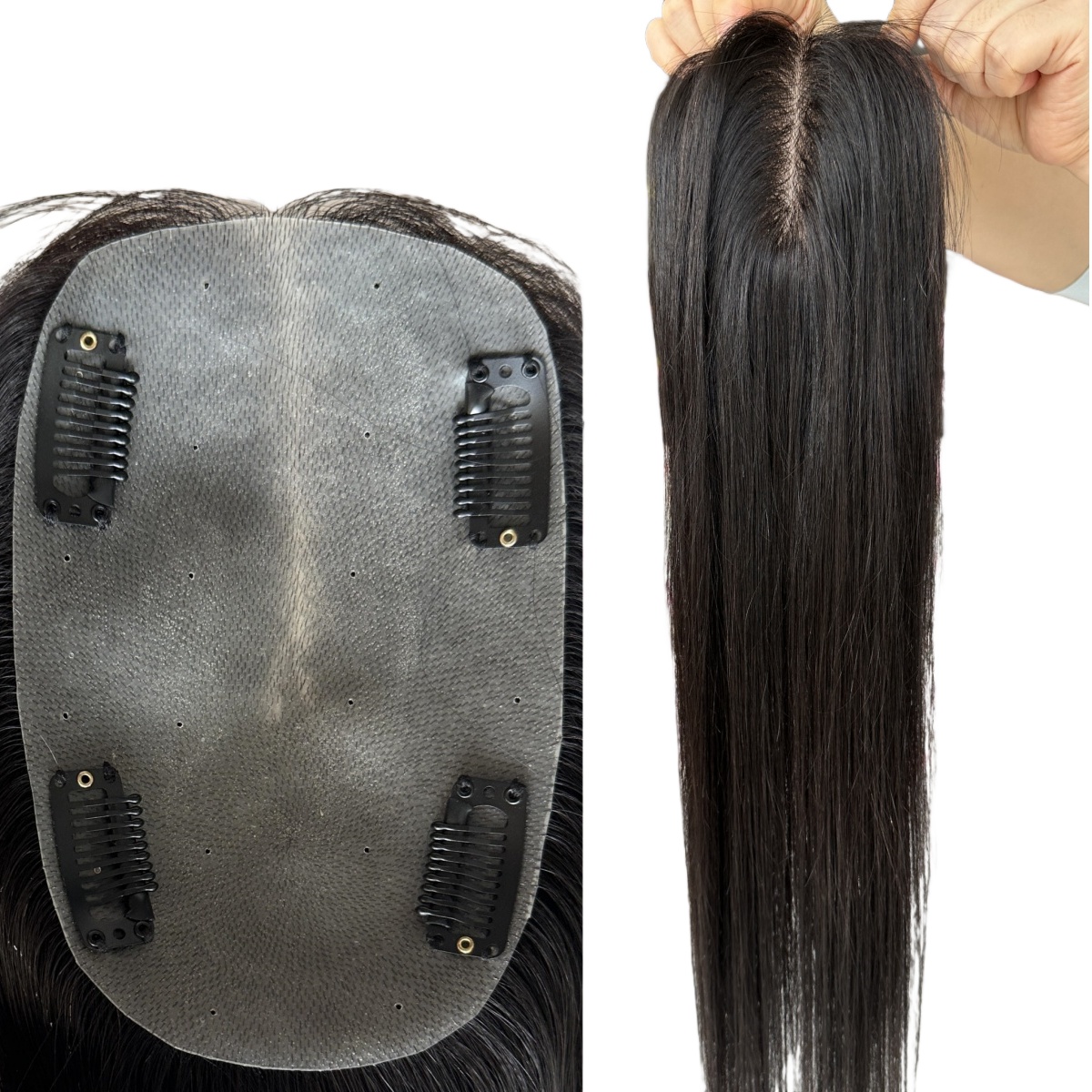 Thin Skin PU Injection Women Topper with Clips 4x5'' Remy Virgin Human Hair Toupee for Women Grade a Topper