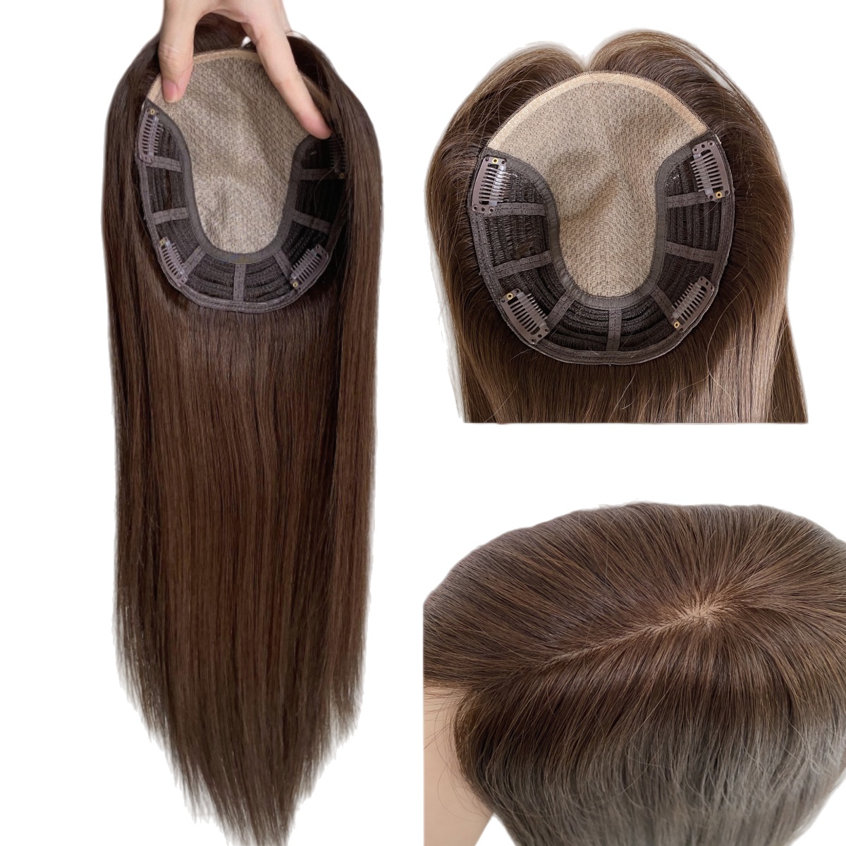 Stock 6.5x7” Invisible silk base human hair topper, hand tied topper for women, Brown Color silk parting hair toppers