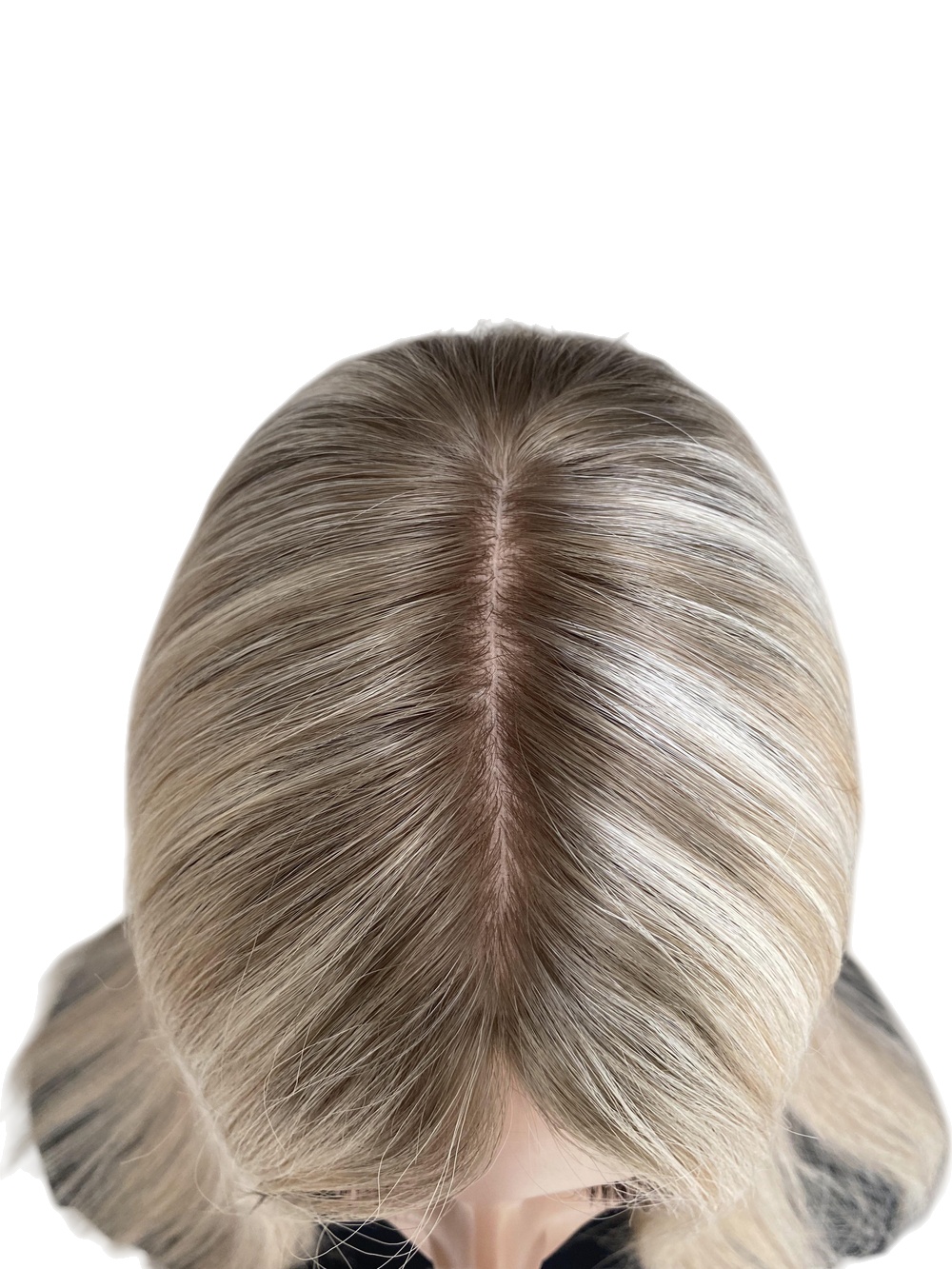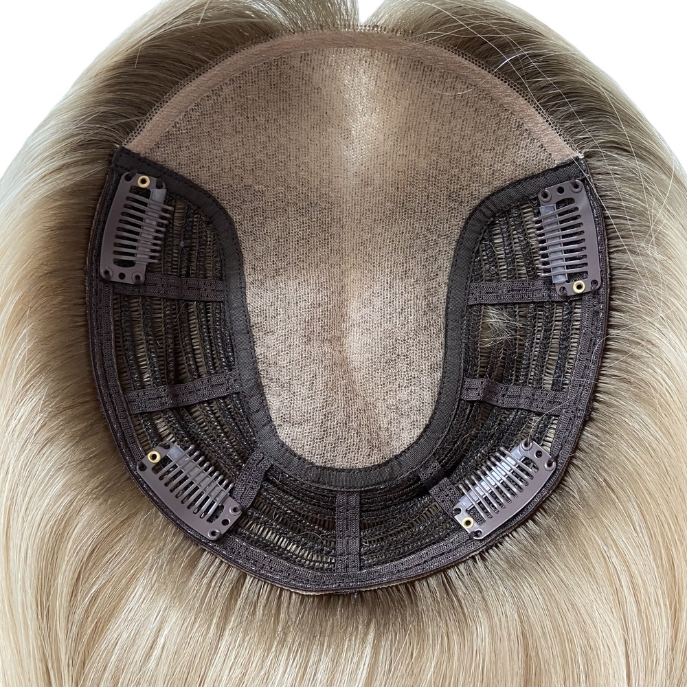 Highlights Color Virgin Human Hair Topper 6.5X7 Silk Base with Wefted Full End Realistic Scalp