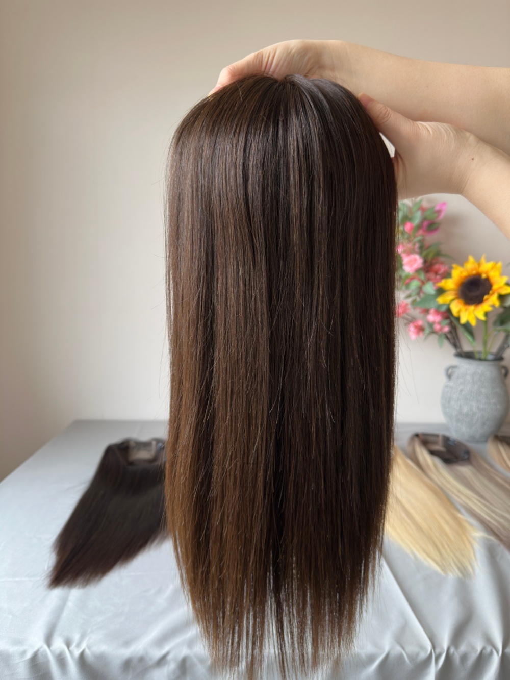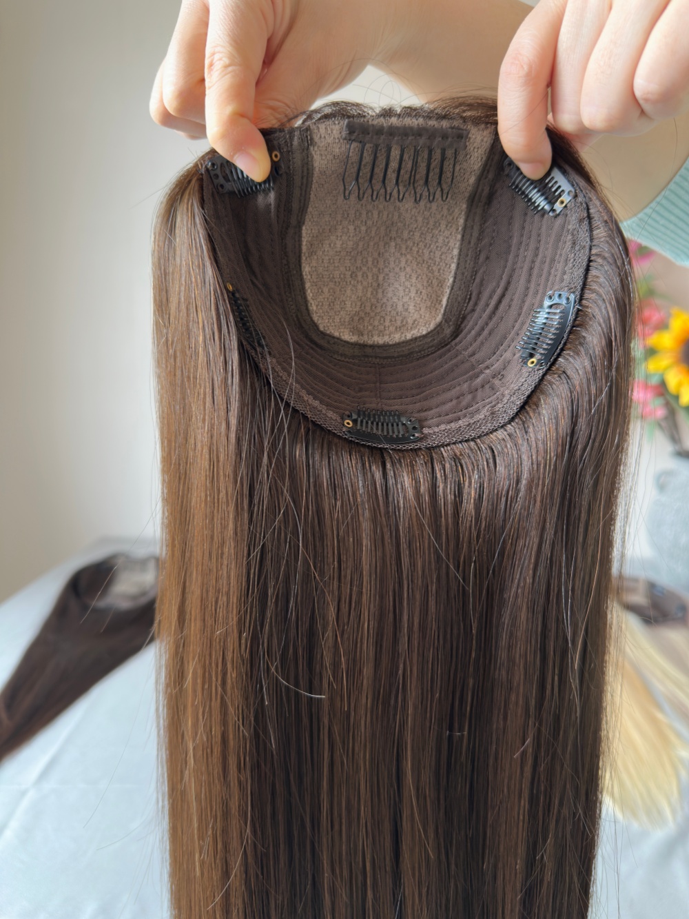6x7 Dark Brown Color Silk Base Topper With Weft for Women Clip in Hair Topper